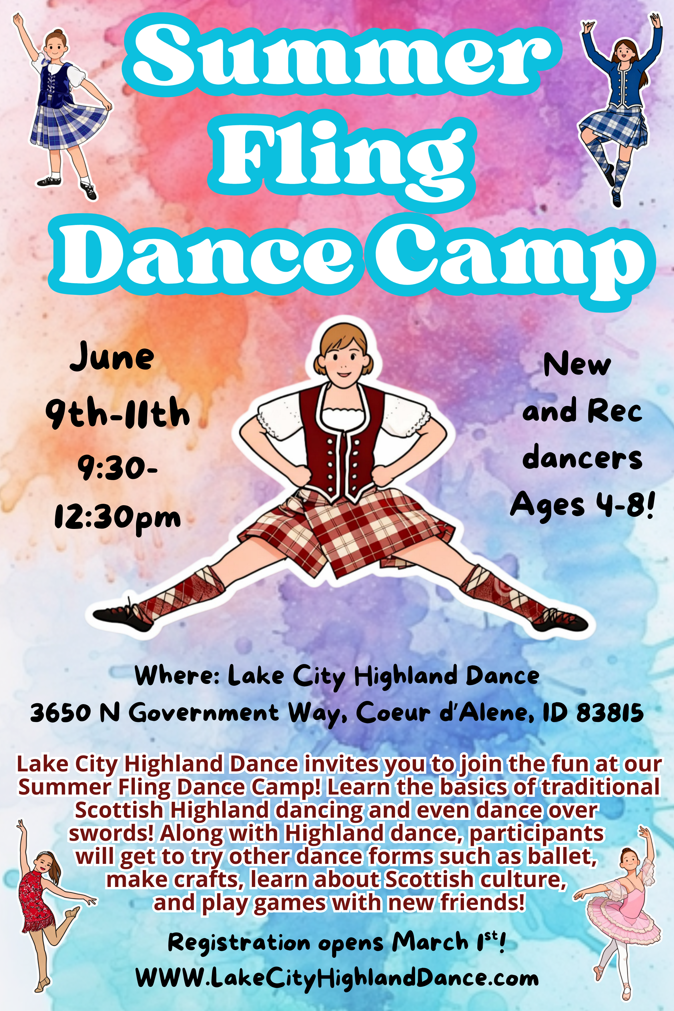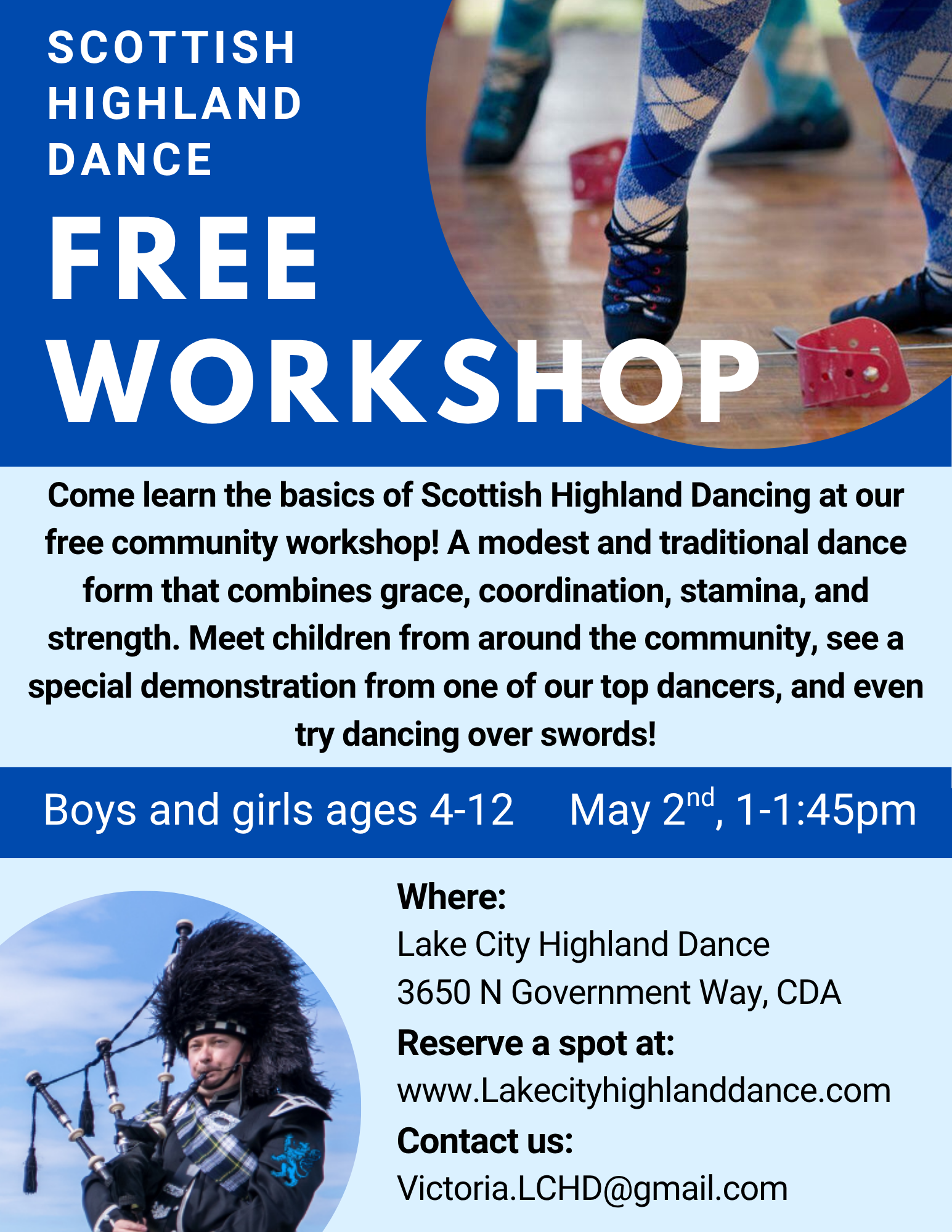 Teaching Traditional Scottish Highland Dancing to boys and girls ages 4+ in Coeur d’Alene, Idaho.